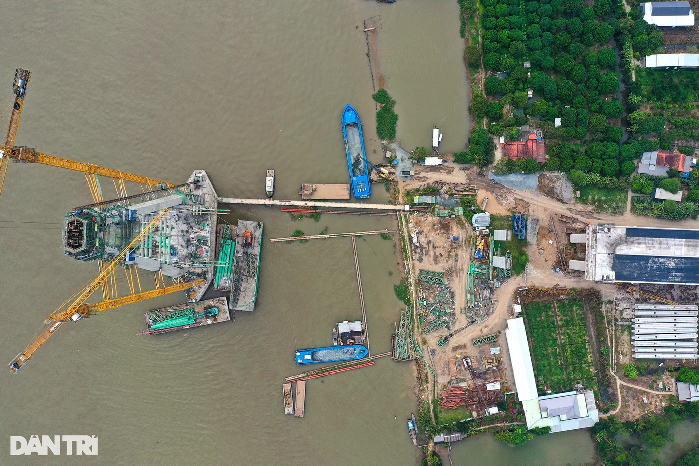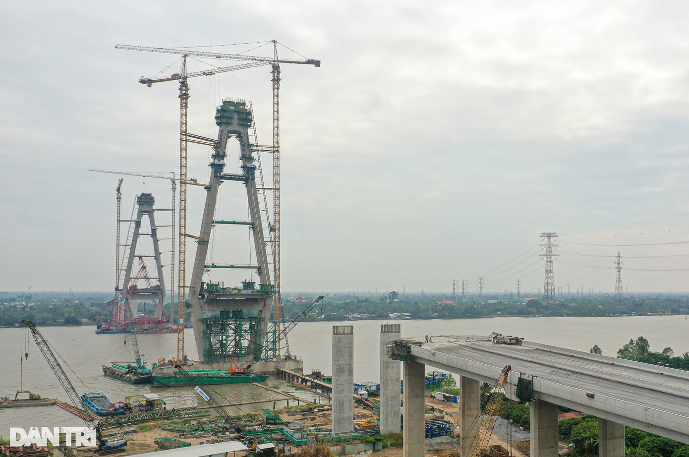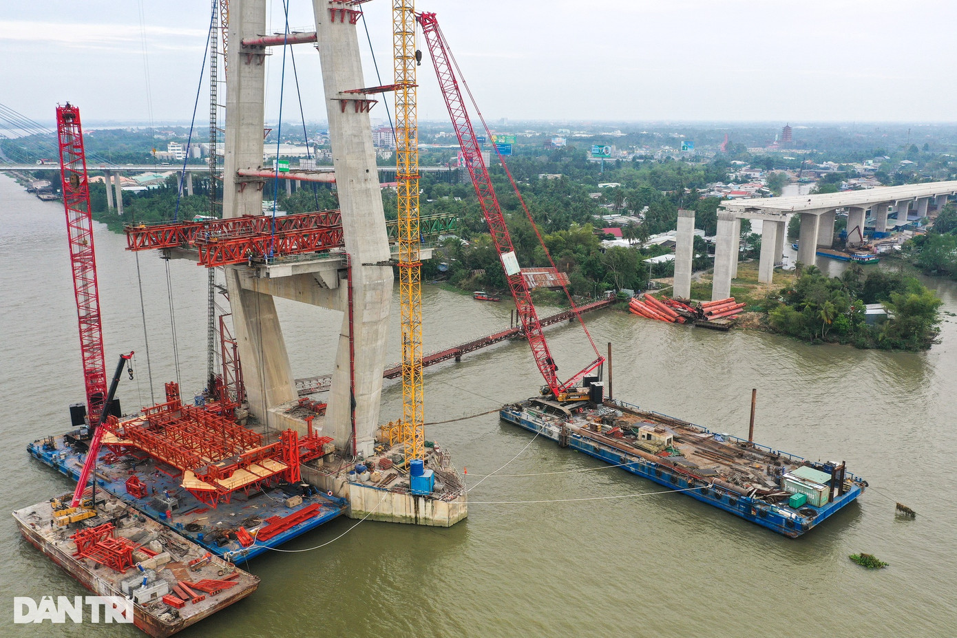 Đến thời điểm hiện tại, hai trụ chính của cầu đang được thi công tiến vào nhau. Trụ T16 (phía Vĩnh Long) hơn tiến độ trụ T15 (phía Tiền Giang) khoảng 10 ngày.