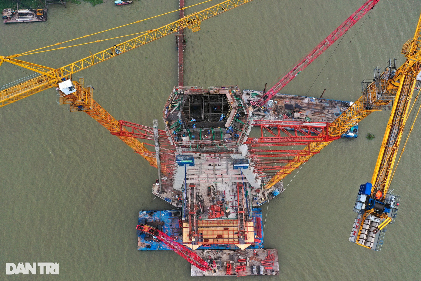 Nhà thầu sử dụng 4.800 khối bê tông, 800 tấn thép để thi công mỗi bệ trụ tháp chính T15, T16.