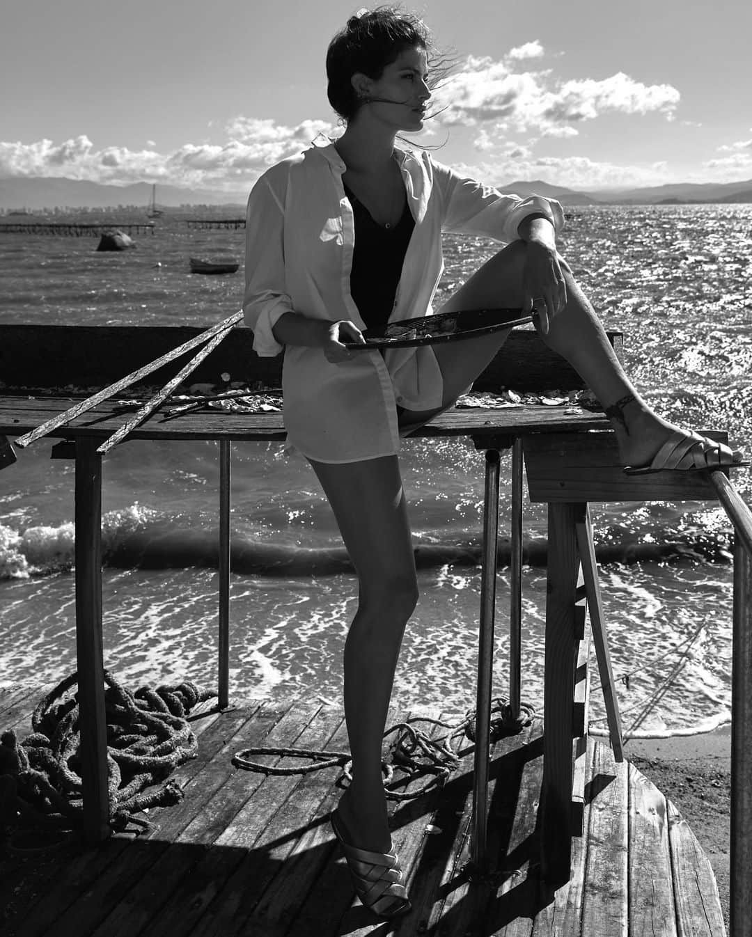 Trên trang cá nhân Instagram, siêu mẫu Brazil đăng loạt ảnh đen trắng mặc nội y khoác sơ mi hững hờ.