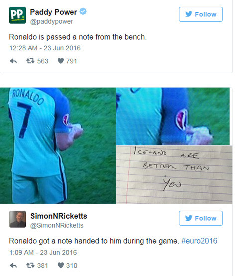 Cũng có thể là một cách khích tướng (Cả đội Iceland còn hơn chú đấy) để Ronaldo nổi khùng ghi thêm bàn thắng nữa cho Bồ Đào Nha