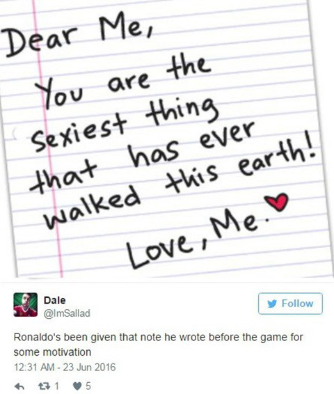 Hay cũng có thể là một cách... tự sướng của Ronaldo nhằm có thêm động lực ra sân ở trận đấu cuối vòng bảng EURO 2016