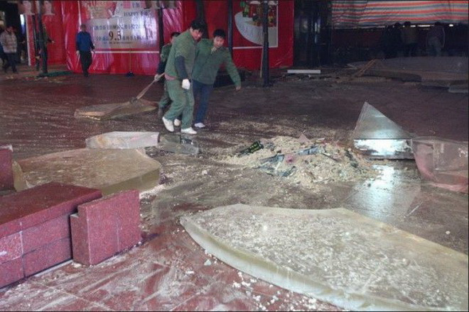 Những mảng thủy tinh dày đến 25 cm vỡ tung làm 7 công nhân, 8 khách tham quan và mua sắm bị thương. Theo Huffingtonpost, những người này bị “bầm tím và có nhiều vết cắt sâu”.