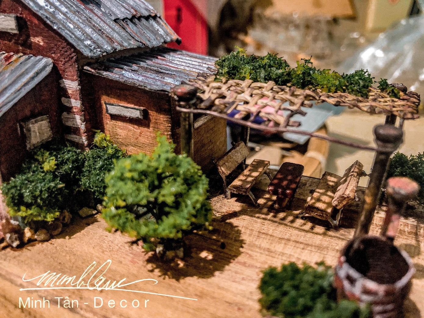 Quy trình thông thường cho một sản phẩm của Tân là: Lên ý tưởng; chọn các miếng gỗ vụn có kích thước và hình dáng phù hợp; rồi cưa, cắt thành hình dạng mong muốn. Nếu sản phẩm có chi tiết mái nhà thì phần mái sẽ được làm bằng lõi bìa giấy carton. Tân thường sử dụng màu acrylic để tô sản phẩm sau khi tạo hình xong. Cuối cùng, Tân dán cố định các chi tiết với phần đế bằng keo 502.