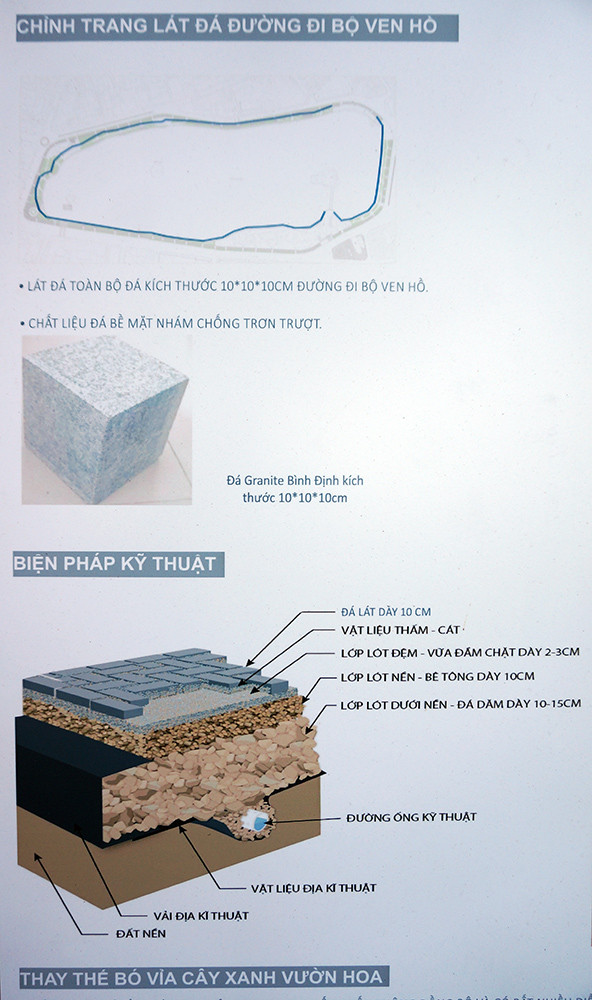 Hiện trạng và đề xuất khi cải tạo lối đi sát mép hồ.