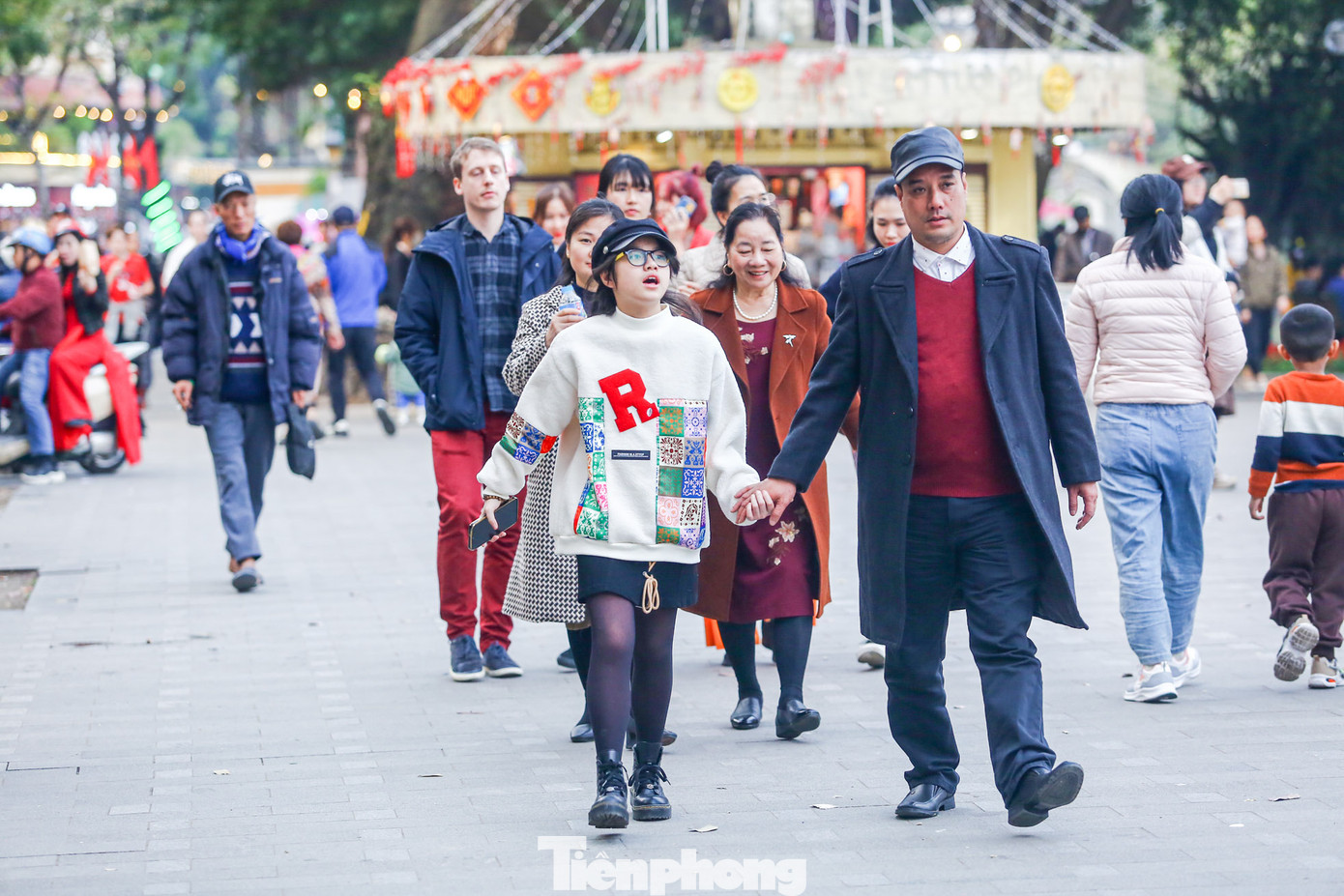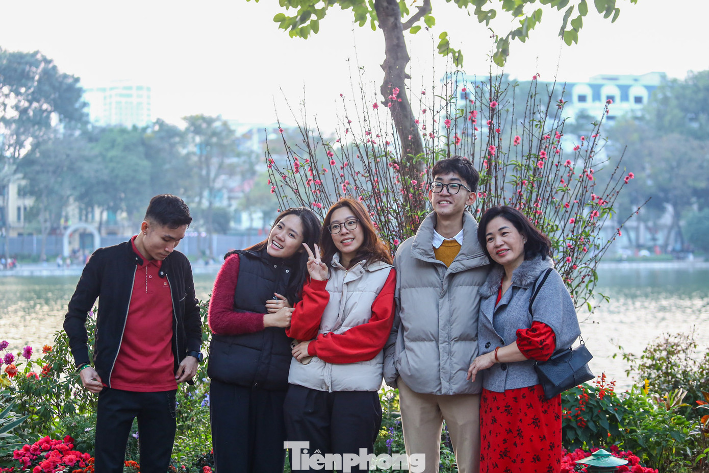 | Ghi nhận của PV, từ chiều mùng 1 Tết (10/2), khu vực xung quanh hồ Hoàn Kiếm (quận Hoàn Kiếm) tấp nập người du xuân, chụp ảnh, tận hưởng không khí Tết. |