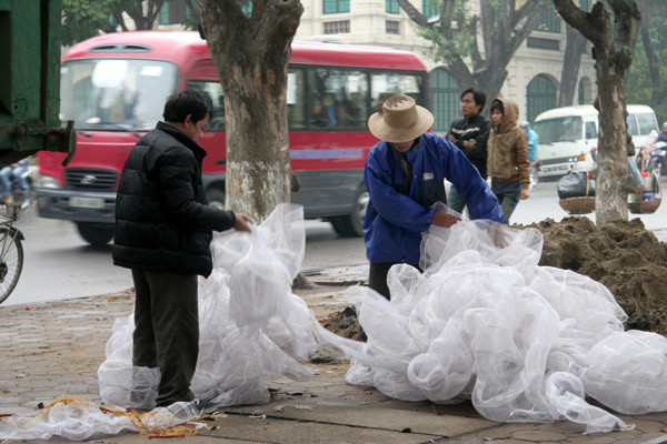 TPO – Sau bốn ngày diễn ra lễ hội hoa, quanh khu vực Hồ Gươm (Hà Nội) là khung cảnh ngổn ngang đất cát, xô lệch ghế đá, hàng rào... Trời mưa phun khiến công tác thu dọn gặp khó khăn.