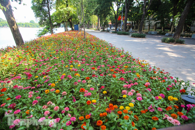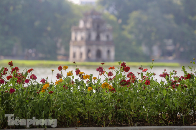 Nhiều loài hoa khác nhau được trồng xung quanh hồ Hoàn Kiếm.