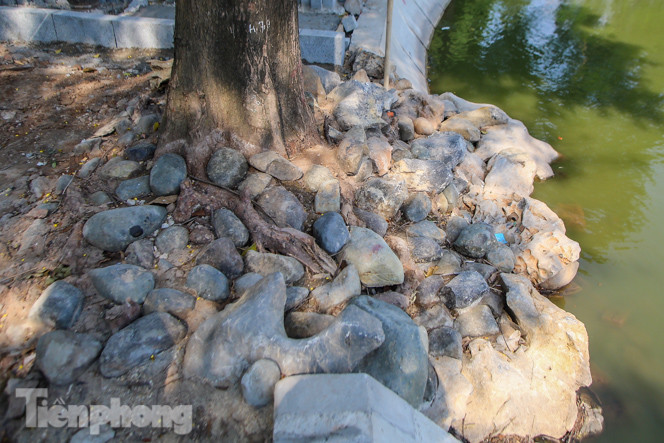 Gốc cây được trang trí bằng đá tự nhiên.