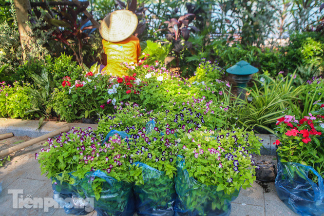 Các bồn hoa được công nhân trồng cây trang trí.