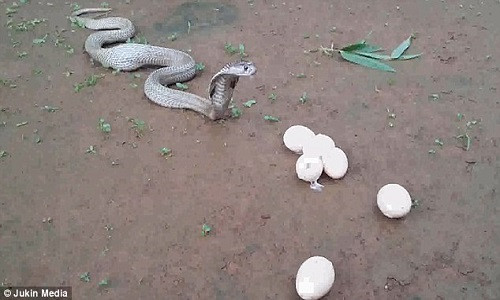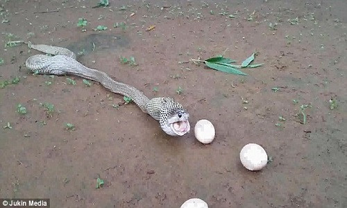 Cảnh con rắn gồng mình nhả ra chỗ trứng được một khách tham quan ghi lại ở công viên quốc gia Similipal thuộc bang Odisha, Ấn Độ.