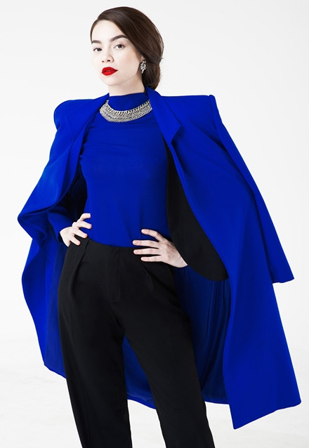 Sau xám, xanh cobalt là sắc màu lạnh gây bão, được nữ ca sĩ chọn để làm mới tủ đồ Thu Đông.