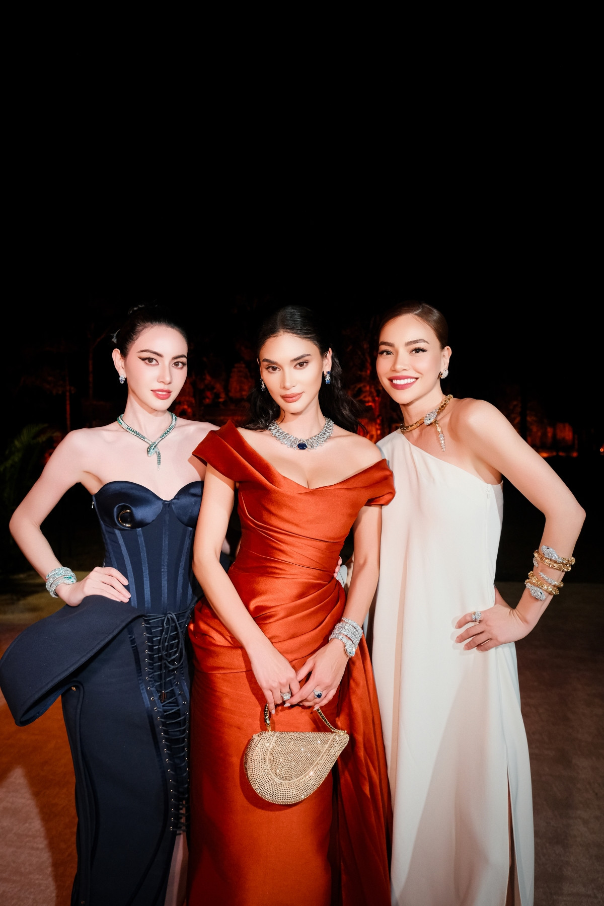 Nữ nghệ sĩ đeo bộ trang sức BVLGARI trị giá hơn 30 tỷ đồng, gồm: Bông tai gần 2,9 tỷ đồng, hai vòng tay - mỗi chiếc hơn 8,6 tỷ đồng, nhẫn gần 2,6 tỷ đồng, vòng cổ gần 9,5 tỷ đồng.