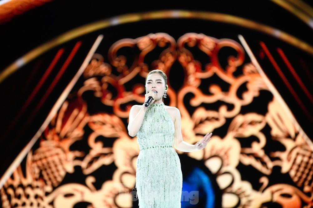 “Học trò” của Hồ Ngọc Hà là ca sĩ Giang Hồng Ngọc cũng có tiết mục ấn tượng không kém. Cô thể hiện ca khúc Vụt sáng thành vì sao để cổ vũ 15 thí sinh xuất sắc nhất cuộc thi Hoa hậu Việt Nam 2024 trình diễn váy dạ hội.