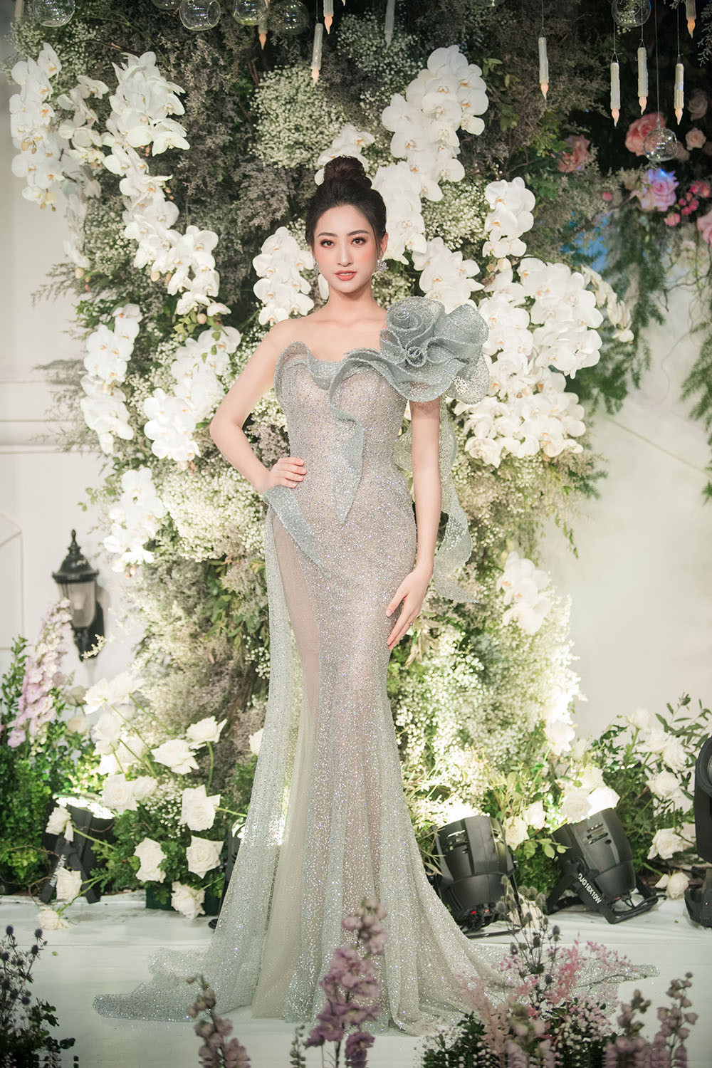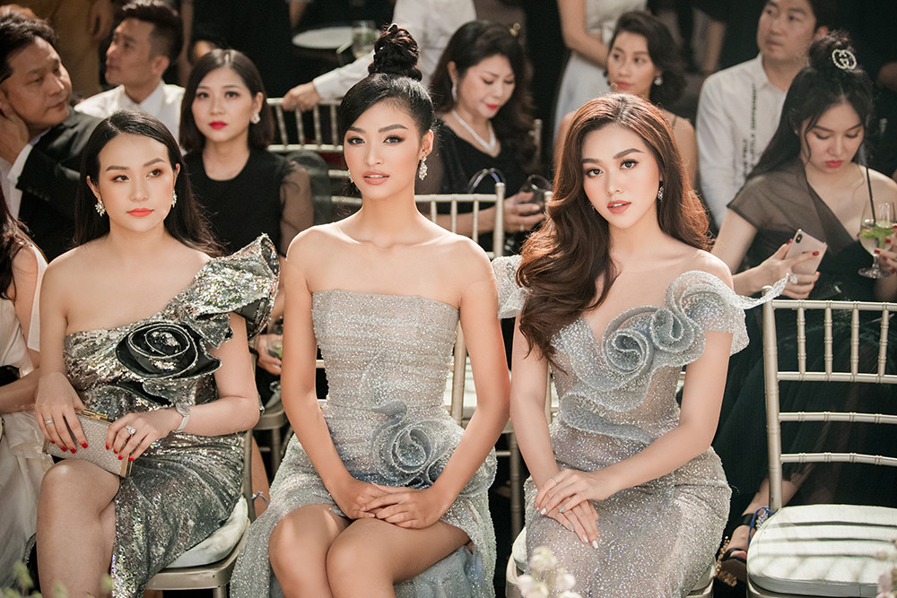 Sự kiện còn có sự xuất hiện của top 3 Miss World Vietnam 2019. Ba người đẹp diện váy dạ hội ánh bạc đồng điệu.
