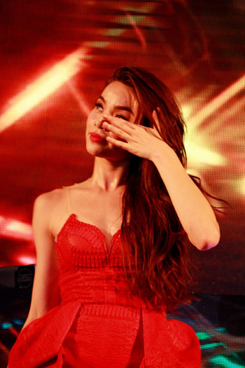 Thời tiết quá nóng cộng với việc biểu diễn hết mình khiến Hồ Ngọc Hà liên tục phải lau mồ hôi.