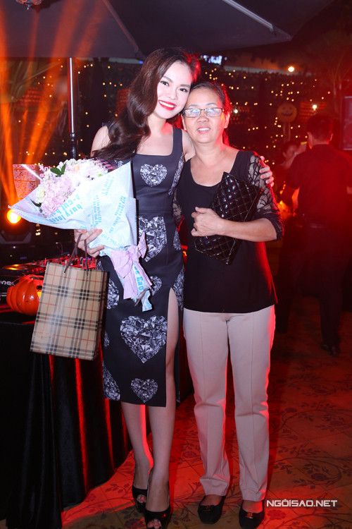 Tối qua, mẹ của Giang Hồng Ngọc cũng đến dự tiệc. Trước đó, trong họp báo sau đăng quang, Hồng Ngọc chia sẻ, sẽ dùng số tiền thưởng mua nhà trả góp tặng bố mẹ.
