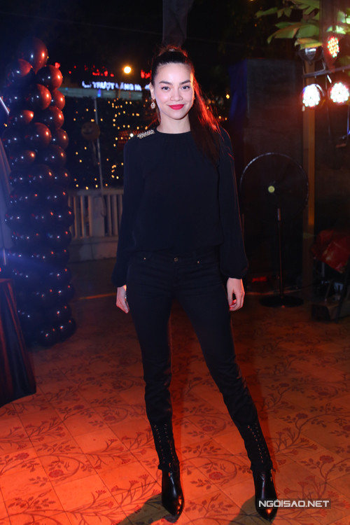 Tối 23/10, Hồ Ngọc Hà làm tiệc mừng chiến thắng cho Giang Hồng Ngọc tại TP HCM. Cô diện một 'cây' đen thanh lịch, giản dị đi tiệc.