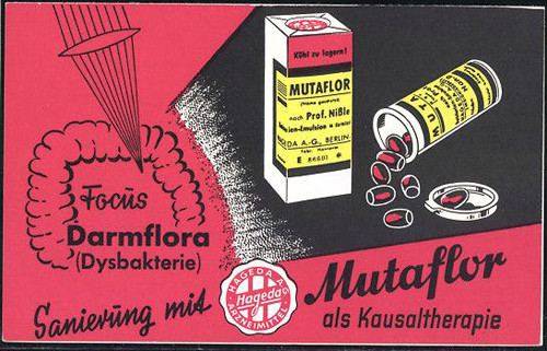 Ngoài làm việc ở phòng khám tư, ông Morell còn là một thành viên ban quản trị công ty dược Hageda. Công ty này sản xuất một loại thuốc kỳ lạ tên là Mutaflor, trong đó các thành phần hoạt tính là vi khuẩn sống nuôi cấy từ phân của “một nông dân Bulgaria thuộc dòng dõi khỏe mạnh nhất”. Mutaflor được dùng để trị rối loạn tiêu hóa dựa trên lý thuyết là các vấn đề tiêu hóa là do vi khuẩn có lợi sống trong đường ruột và tốt cho tiêu hóa đã bị tiêu diệt hoặc bị các vi khuẩn có hại lấn át. Theo đó, khi uống loại thuốc chứa vi khuẩn cấy từ phân một nông dân Bulgaria sống sạch sẽ, khỏe mạnh sẽ giúp đưa lợi khuẩn vào đường ruột gặp vấn đề, khôi phục lại chức năng bình thường. Đó là lý thuyết.