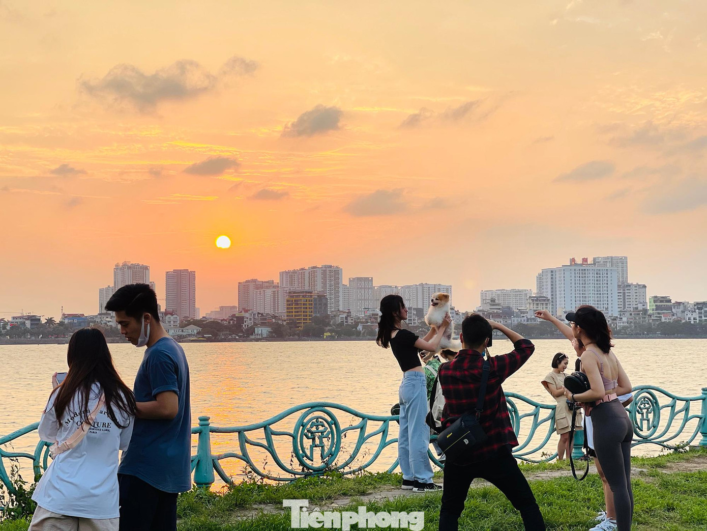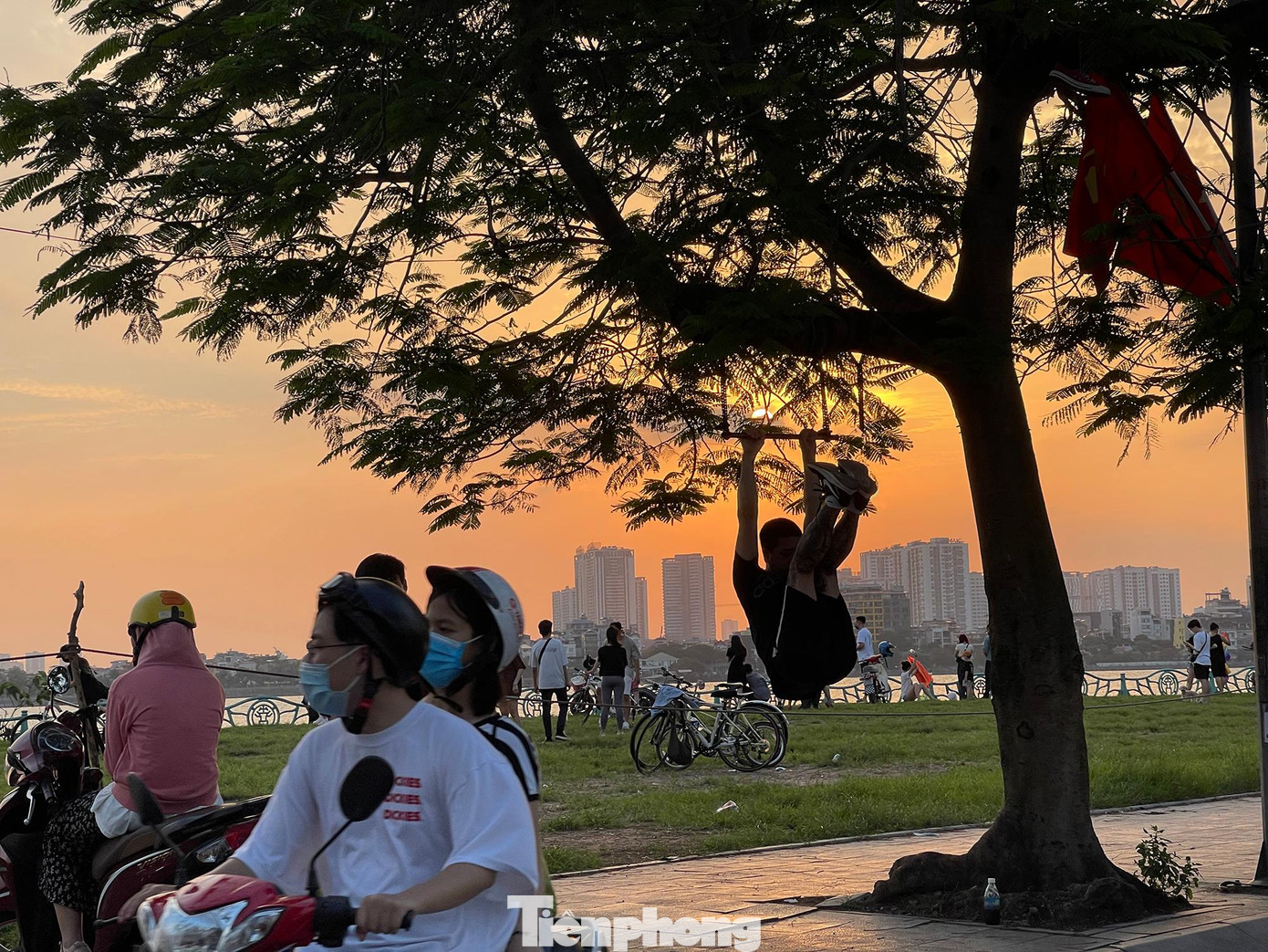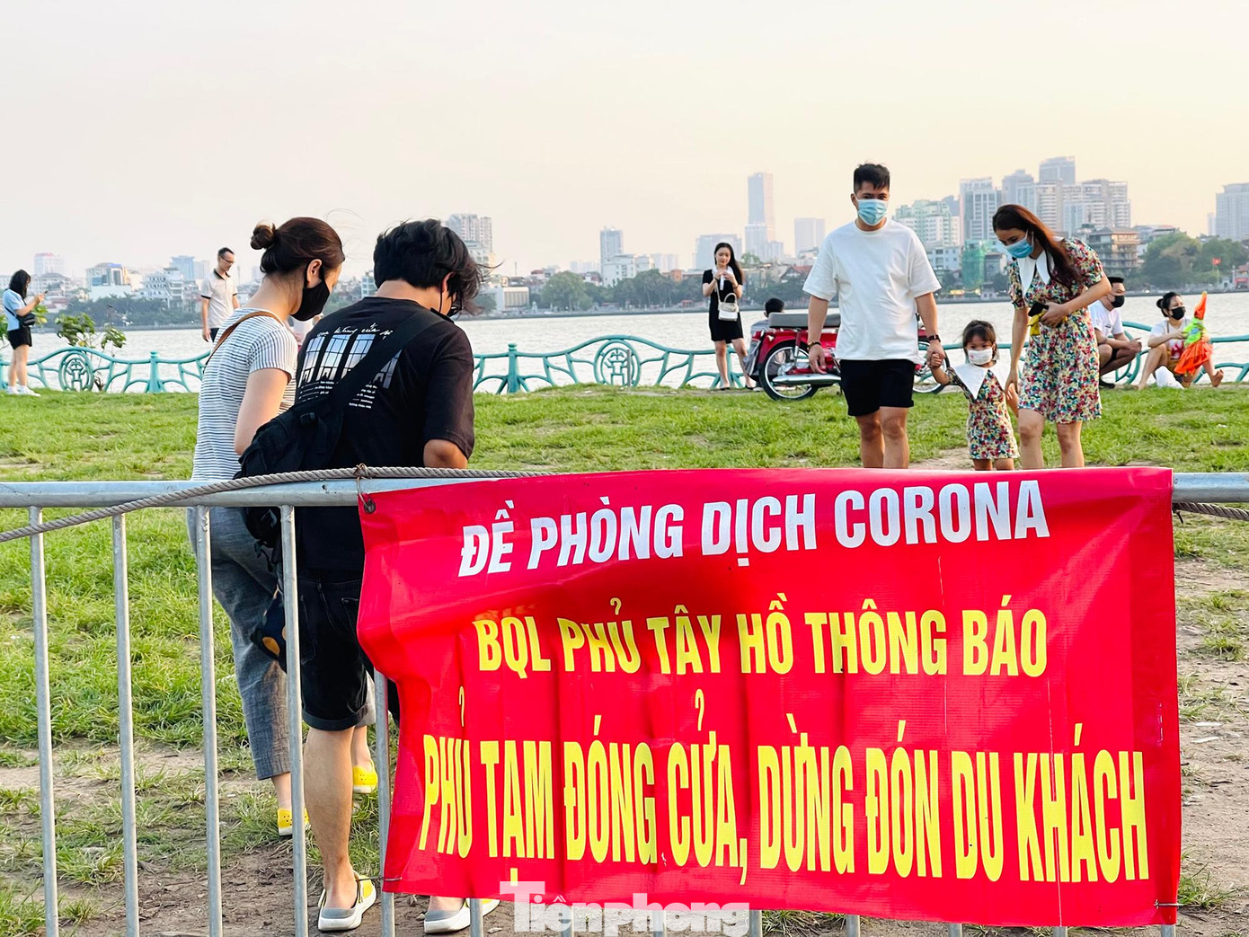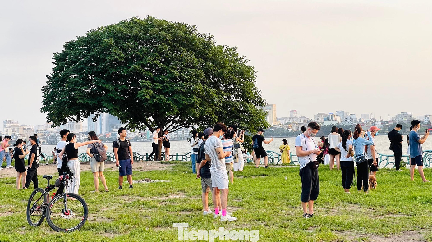 | Khu vực bãi cỏ cạnh phủ Tây Hồ chiều nay giống như một "công viên" thu nhỏ. Có khá đông người kéo đến đây để vui chơi, hóng gió, chụp ảnh dù chính quyền đã khuyến cáo người dân nên hạn chế đi lại trước diễn biến phức tạp của dịch COVID-19. |