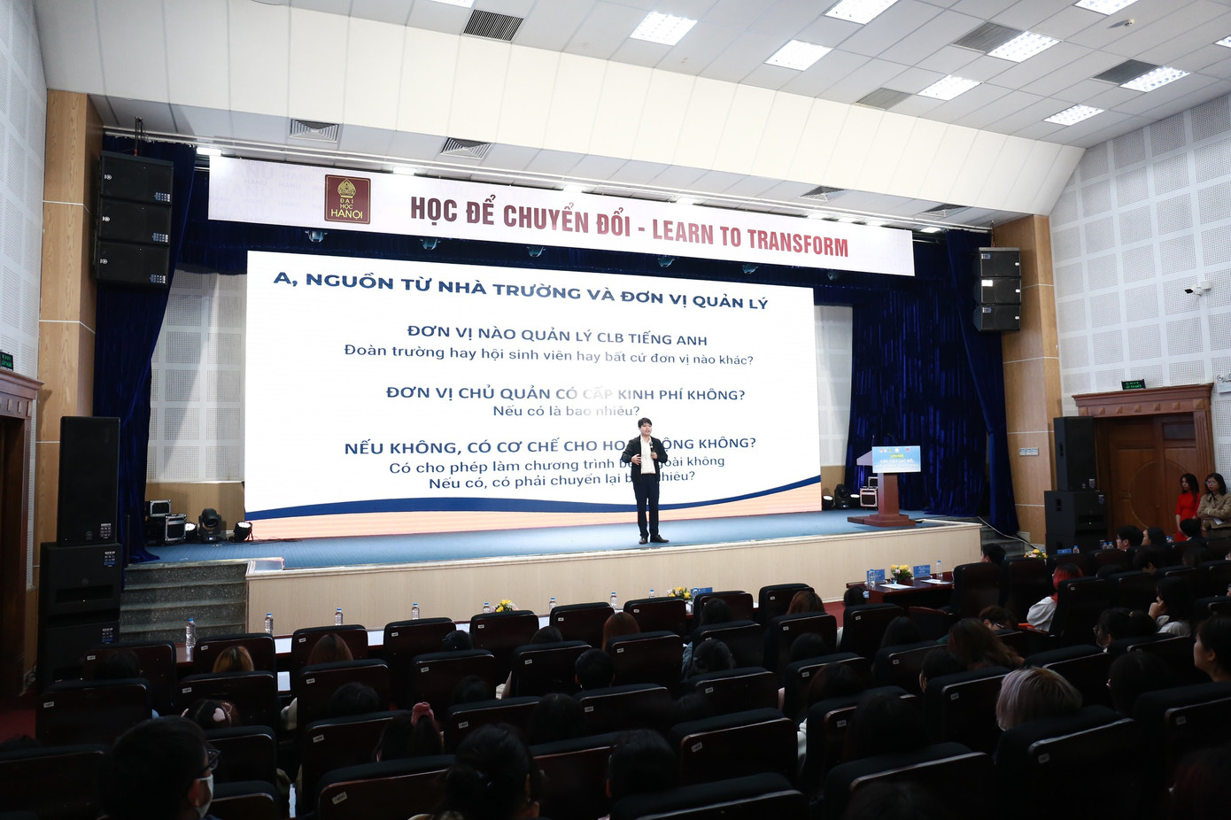 Trong đó, điểm cầu tại TP Hà Nội diễn ra với chủ đề “Xây dựng bộ máy điều hành, quản lý nhân sự CLB tiếng Anh” và “Quản lý tài chính, định hướng và phát triển CLB tiếng Anh bền vững”. Với những diễn giả, khách mời có chuyên môn cao và sức lan tỏa, ảnh hưởng tới các bạn sinh viên, chương trình giúp các bạn sinh viên hoàn thiện hơn nữa những kỹ năng của bản thân cũng như xây dựng bộ máy tổ chức của CLB vững mạnh.