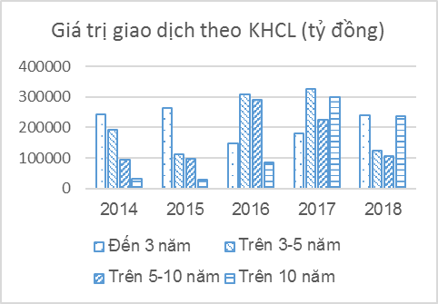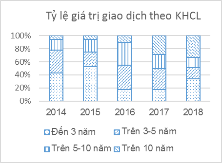Trái phiếu có kỳ hạn còn lại khoảng 10 năm trở lên chiếm khoảng 8% giá trị giao dịch trong năm 2014 (trong đó giá trị giao dịch TPCP có kỳ hạn còn lại trên 10 năm chỉ chiếm 0,3%) đã tăng lên mức khoảng 37% vào năm 2017 (trong đó TPCP có kỳ hạn còn lại trên 10 năm chiếm gần 26%).