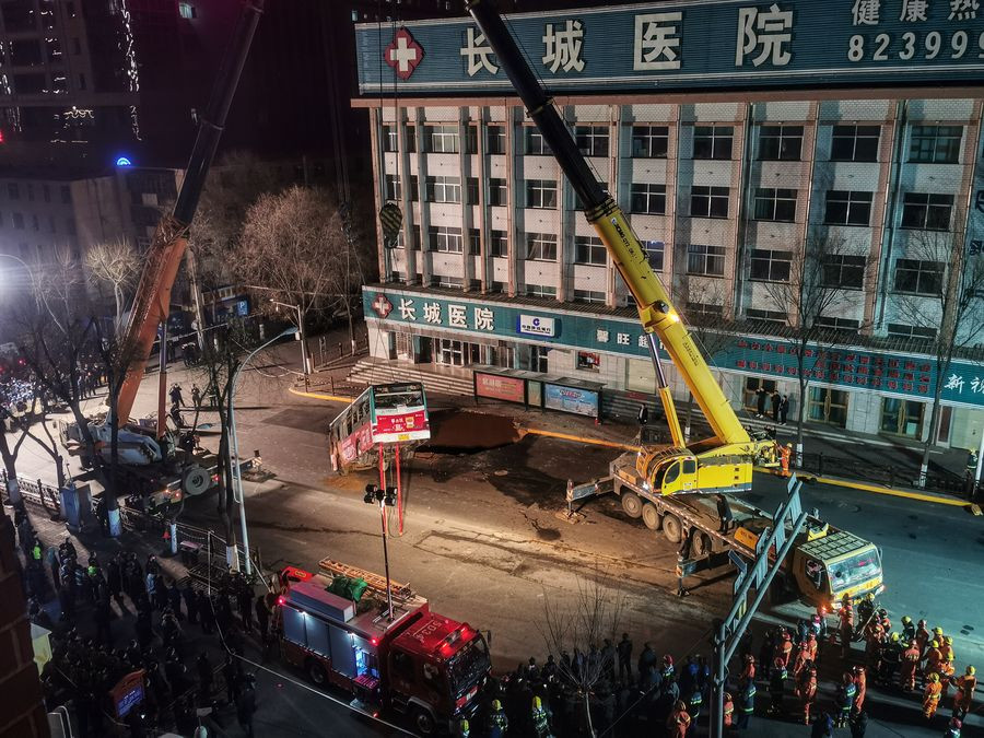Khoảnh khắc xe buýt sụt "hố tử thần". Nguồn: CGTN
