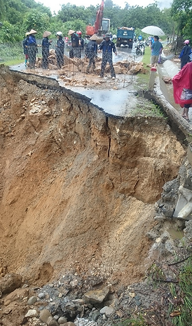 Ảnh hưởng của hoàn lưu bão Kujira, từ chiều tối 24/5 đến sáng nay Lai Châu có mưa lớn. Tại Km7+300 quốc lộ 4D đoạn qua huyện Phong Thổ, lũ quét tràn qua cuốn trôi hàng nghìn mét khối đất đá, tạo thành hố "tử thần".
