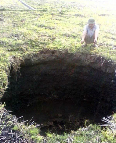 Chiều 5/2, cánh đồng xã Ngọc Phái, huyện Chợ Đồn bất ngờ xuất hiện những hố sâu có đường kính 2-3 m, chỉ cách khu vực dân cư khoảng 100-200 m.