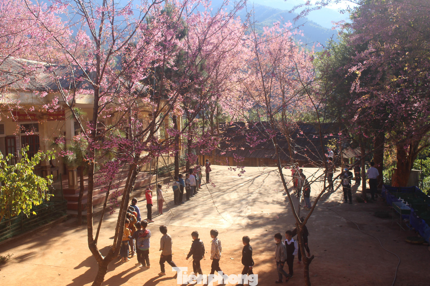| Thầy Nguyễn Quốc Trí - Hiệu trưởng Trường Tiểu học 1 Mường Típ cho biết: "Toàn trường có 181 học sinh, chủ yếu là con em đồng bào dân tộc H’Mông. Vào dịp cuối năm, hoa đào ở đây bung nở rất đẹp. Nếu gặp thời tiết lạnh thì thời gian hoa sẽ kéo dài hơn”. |