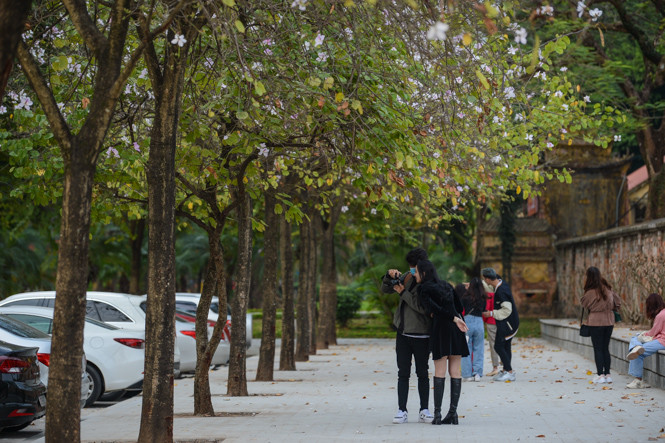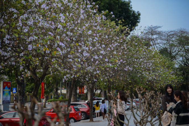 Trên tuyến đường Bắc Sơn-Hoàng Diệu, nơi gắn liền với hình ảnh hoa ban thu hút đông đảo người dân tới đây.