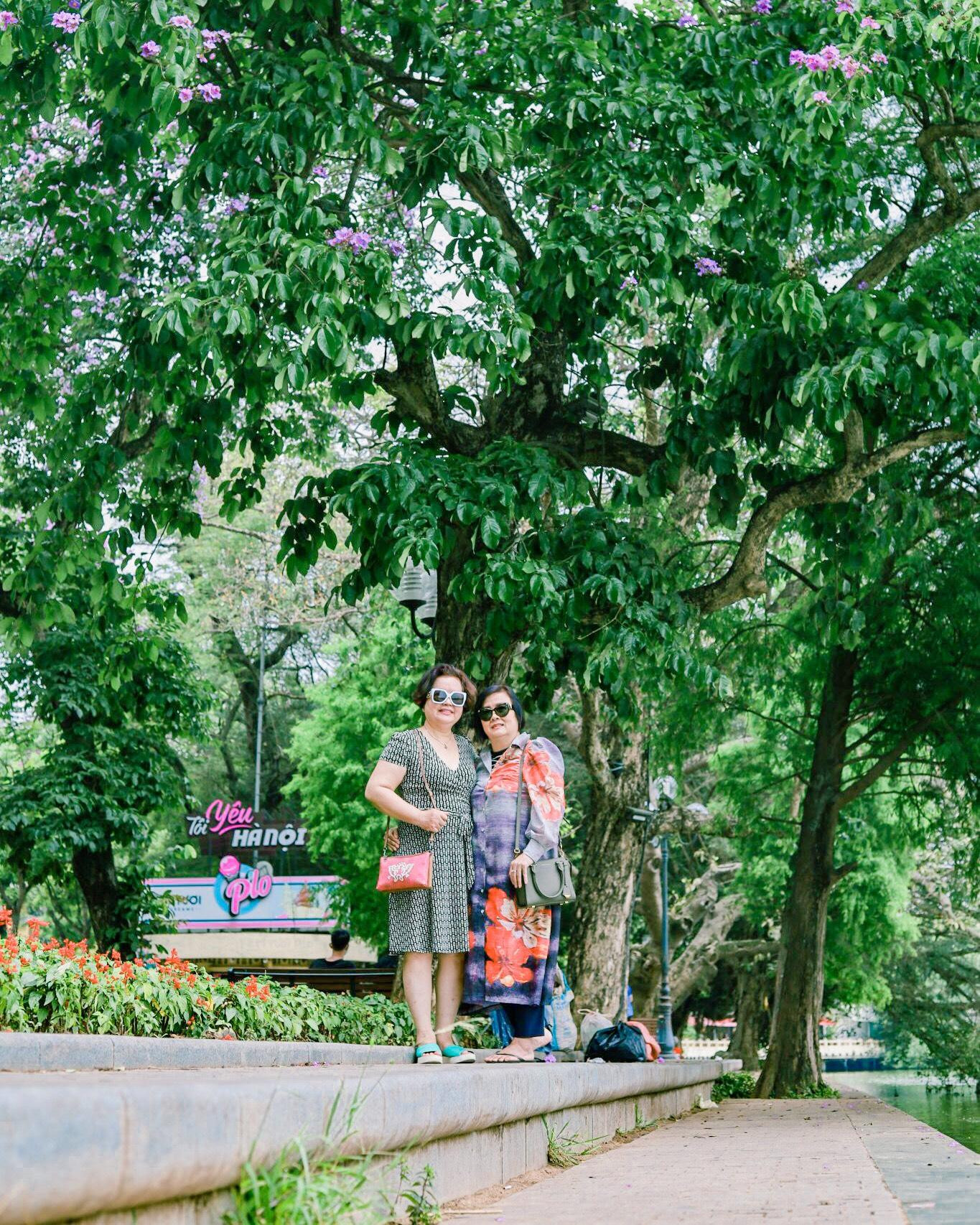 | Bạn Thu Hằng (quận Cầu Giấy) check-in cùng cây bằng lăng trên hồ Gươm (Ảnh: Instagram chuyencuato_21). |