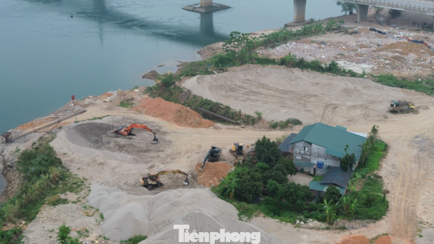 Bên cạnh xe quá tải chở cát lộng hành trên đường đê, các doanh nghiệp thuê đất kinh doanh bãi cát ở đây còn xây dựng nhà vi phạm hành lang bảo vệ đê điều. Nguy hiểm hơn, họ vận chuyển rác thải xây dựng về tập kết tại đây gây mất an toàn hành lang bảo vệ đê và gây ô nhiễm môi trường.