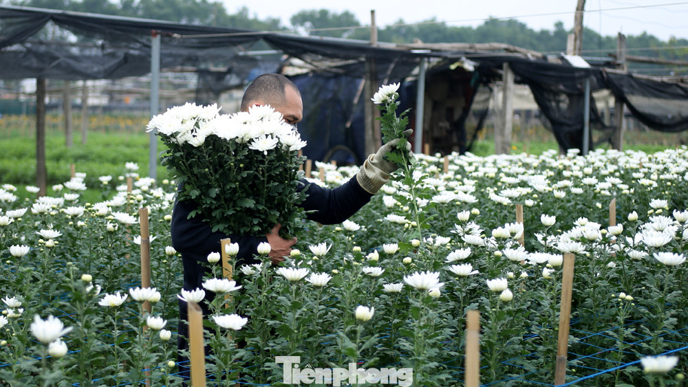 Hoa cúc là một trong những loài hoa được nhiều người dân mua cắm cúng vào ngày rằm tháng Giêng. Năm nay, sức mua của người dân giảm sút nên hoa cúc vì thế mà nở rộ ngay trên nhiều cánh đồng.