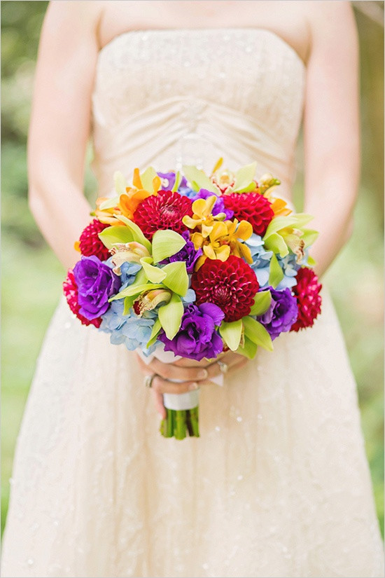TPO - Những bó hoa cầm tay của những cô dâu trẻ hiện đại có thể không cầu kỳ, đắt tiền nhưng lại rất bắt mắt nhờ sắc màu rực rỡ tươi sáng và nổi bật trên nền váy trắng tinh khôi.