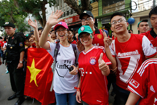 Hàng nghìn cổ động viên đã tới sân Hàng Đẫy (Hà Nội) vào chiều nay để chào đón và giao lưu cùng cựu danh thủ của Arsenal. Số lượng CĐV đông làm tắc nghẽn giao thông khu vực phố Trịnh Hoài Đức.