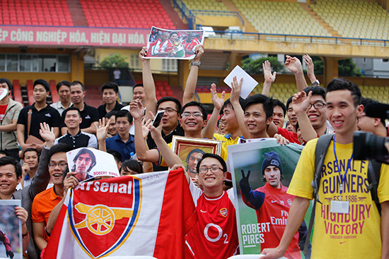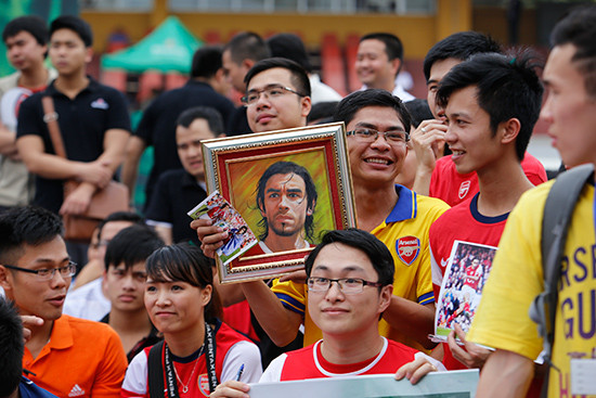 Không chỉ CĐV Arsenal, các fan M.U và các CLB khác cũng tới sân Hàng Đẫy chào đón cựu danh thủ Pires.