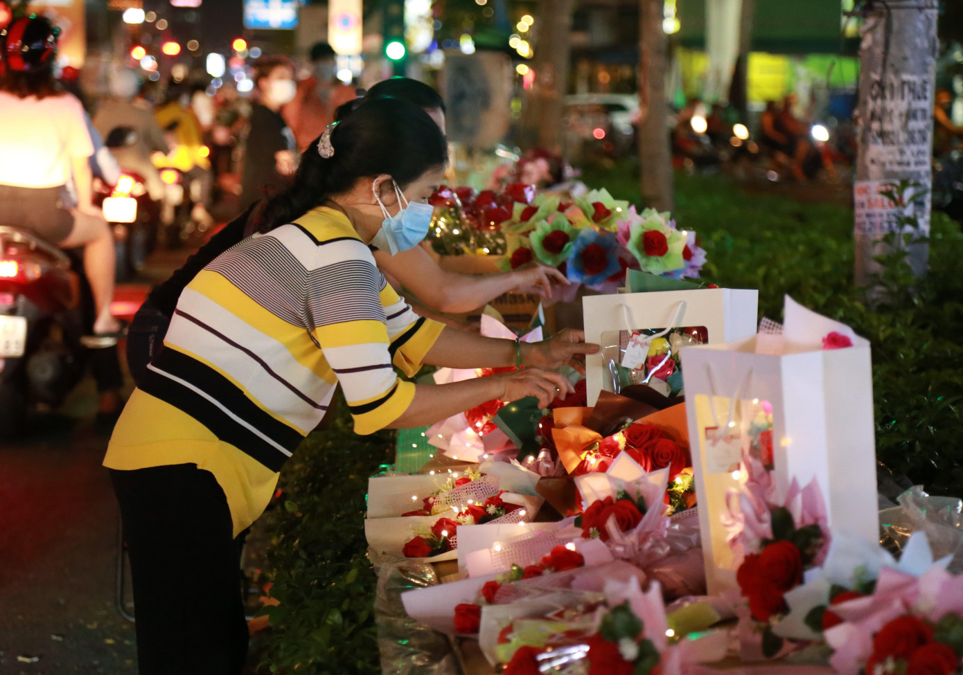 Tối ngày Quốc tế phụ nữ (8/3), khá đông bạn trẻ TPHCM tìm đến các chợ, phố hoa để tìm mua các món quà ưng ý gửi tặng người thân yêu.