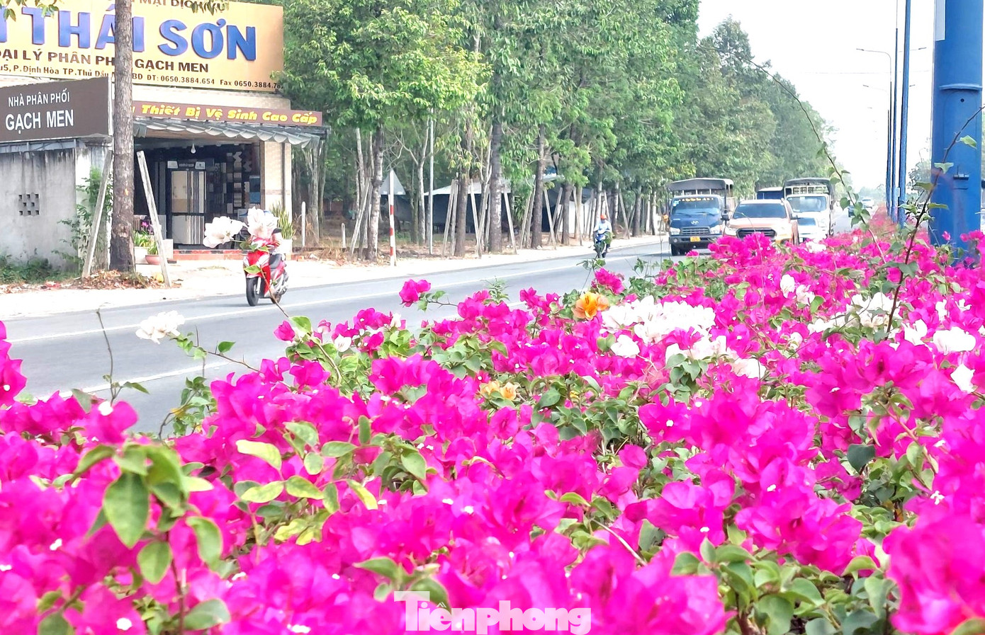 | Hoa giấy nở rực trên tuyến đường Mỹ Phước Tân Vạn |