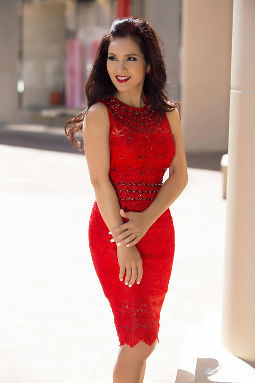 Người đẹp xinh tươi tạo dáng trên đường phố Mỹ. Ngoài công việc MC, Kiều Khanh còn mở nhà dưỡng lão chăm sóc những người già ở Mỹ.