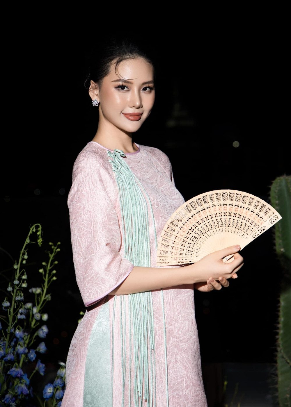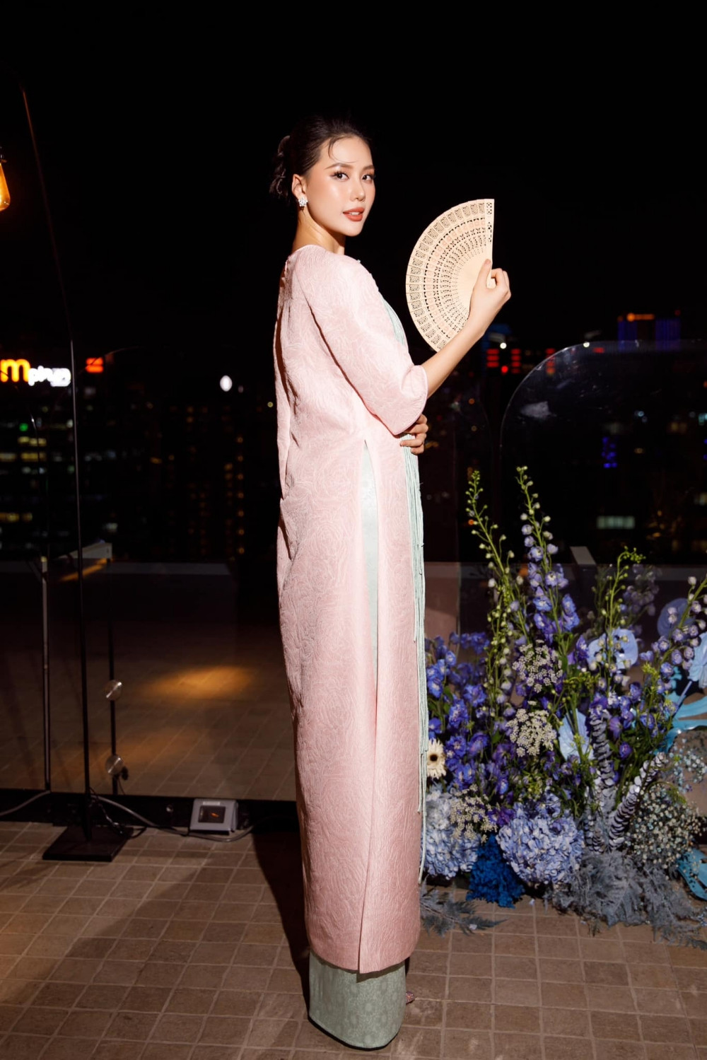 Trong một buổi tiệc đặc biệt của thương hiệu Valenciani của NTK Adrian Anh Tuấn, Hoa hậu Bùi Quỳnh Hoa chọn mặc một thiết kế áo dài dành cho dịp Tết Nguyên đán Giáp Thìn 2024 của nhà mốt này.