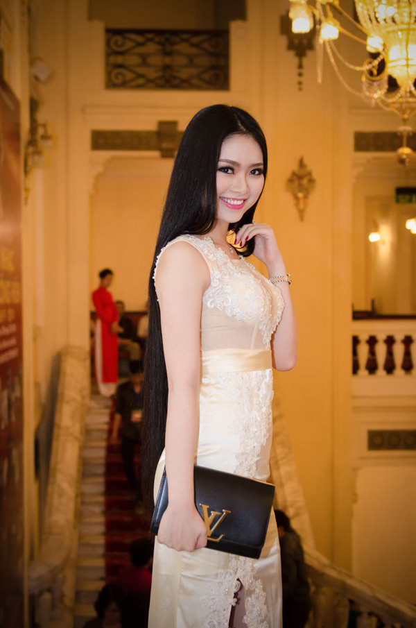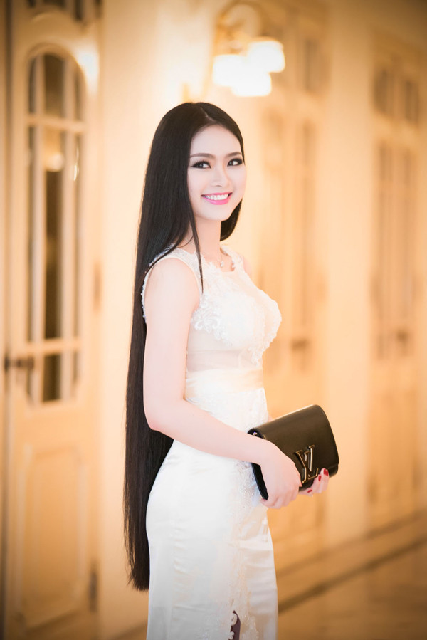 Người đẹp cuốn hút với mái tóc đen dài óng ả.