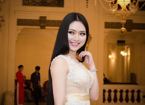Cô luôn trung thành với kiểu tóc này từ khi tham dự cuộc thi Hoa hậu các dân tộc VN.