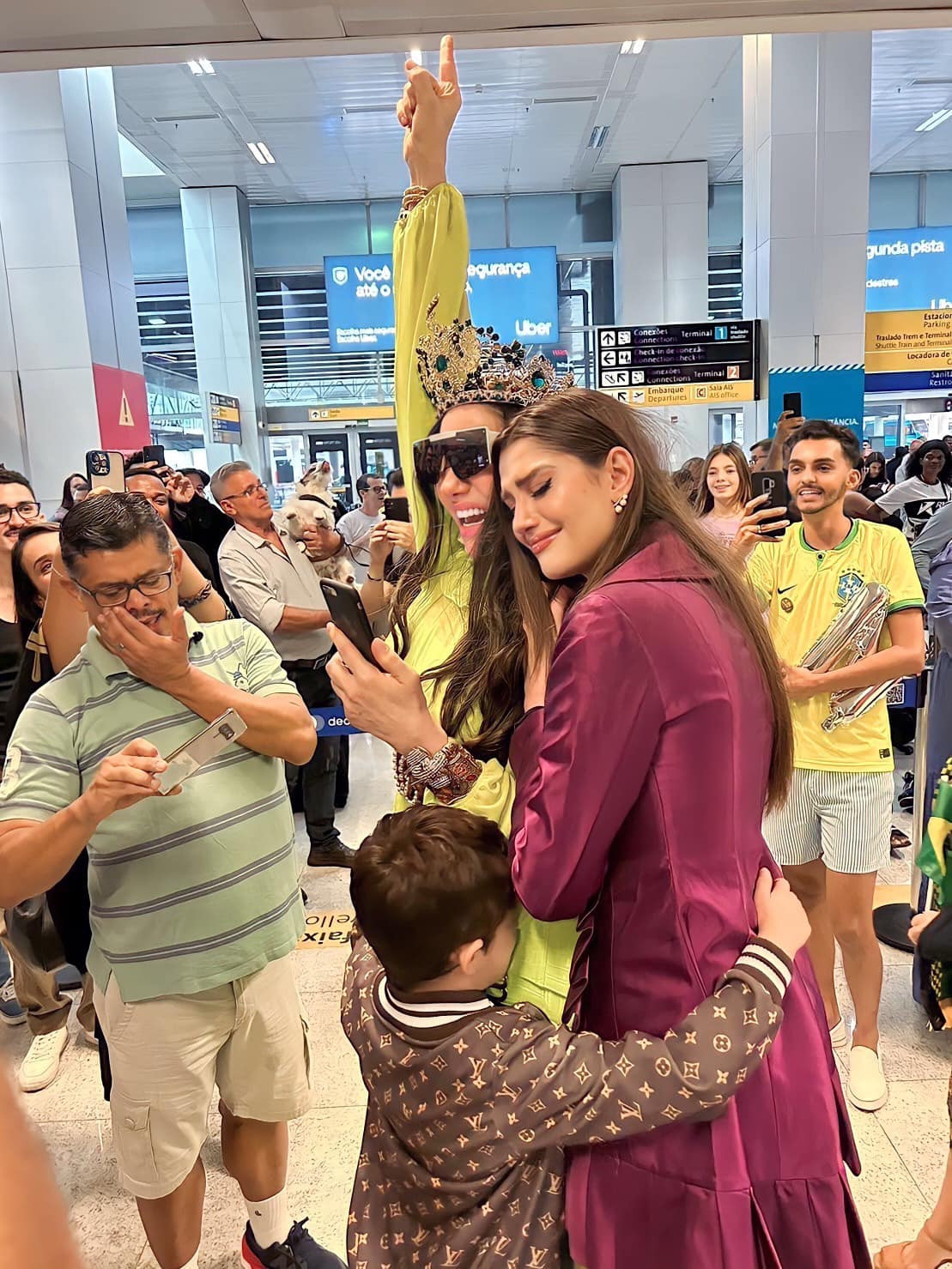 Xuất hiện ở sân bay nhiều người thân, bạn bè và người hâm mộ đã đến để chào đón Isabella Menin. Người đẹp rơi nước mắt xúc động khi được gặp lại người thân sau nhiều tháng xa cách.