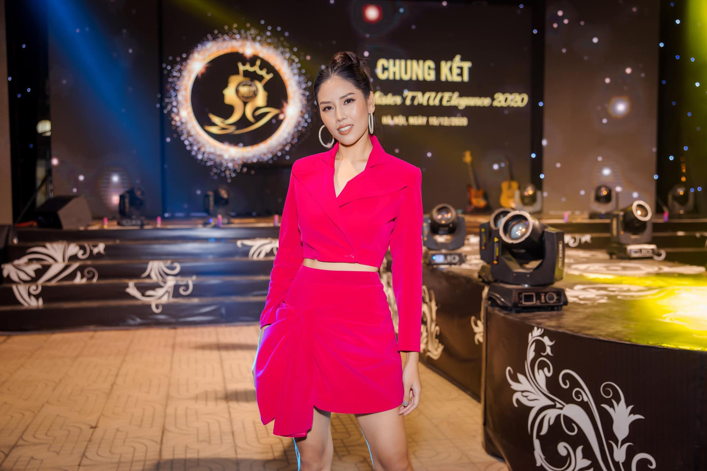 Người đẹp Biển Nguyễn Loan diện trang phục đỏ rực quyến rũ khi đảm nhận vai trò giám khảo trong đêm chung kết Miss and Mister TMU Elegance 2020.