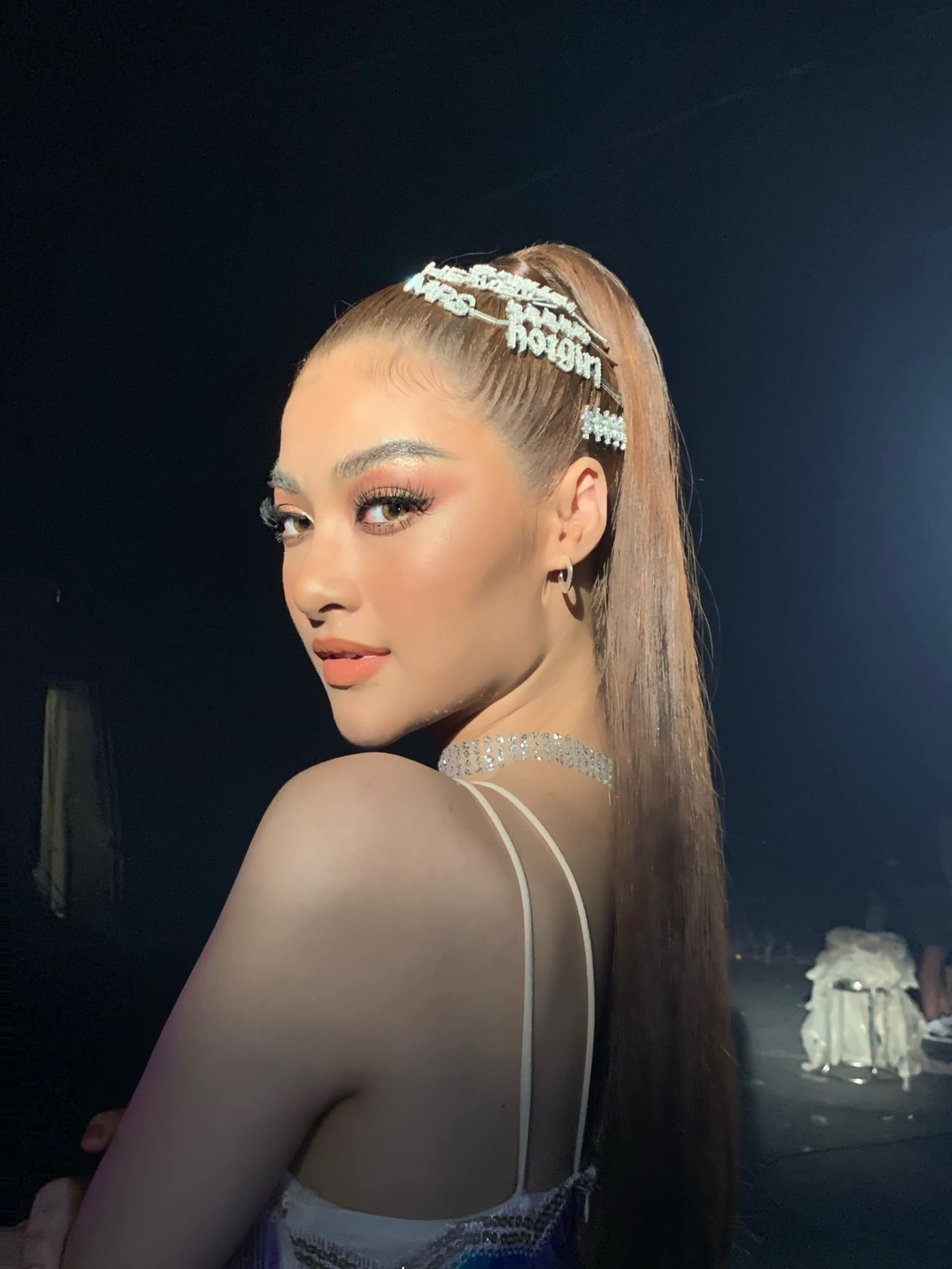 Á hậu Kiều Loan kiêu sa và quyến rũ với kiểu tóc đuôi ngựa yêu kiều.