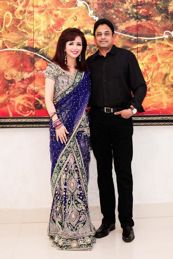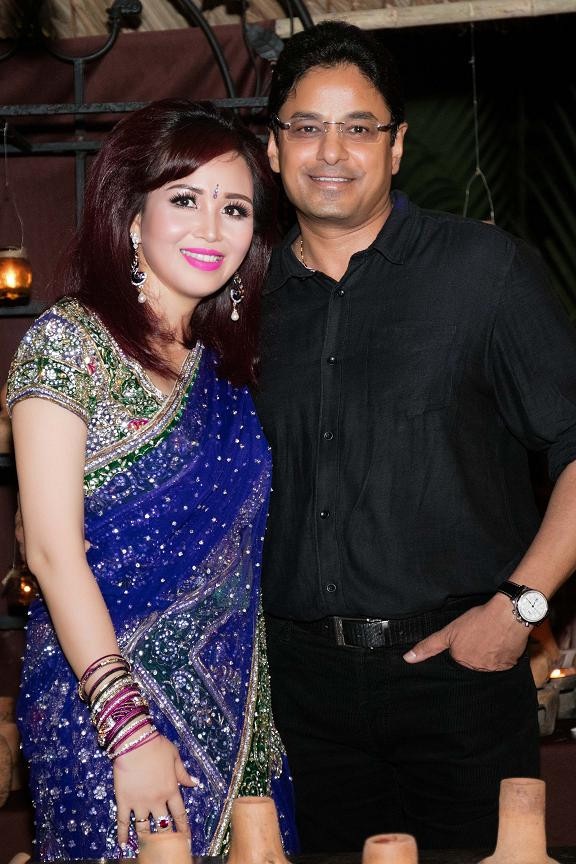 Tối qua, cô được chồng là doanh nhân người Ấn Độ - Maneesh tháp tùng tới sự kiện.