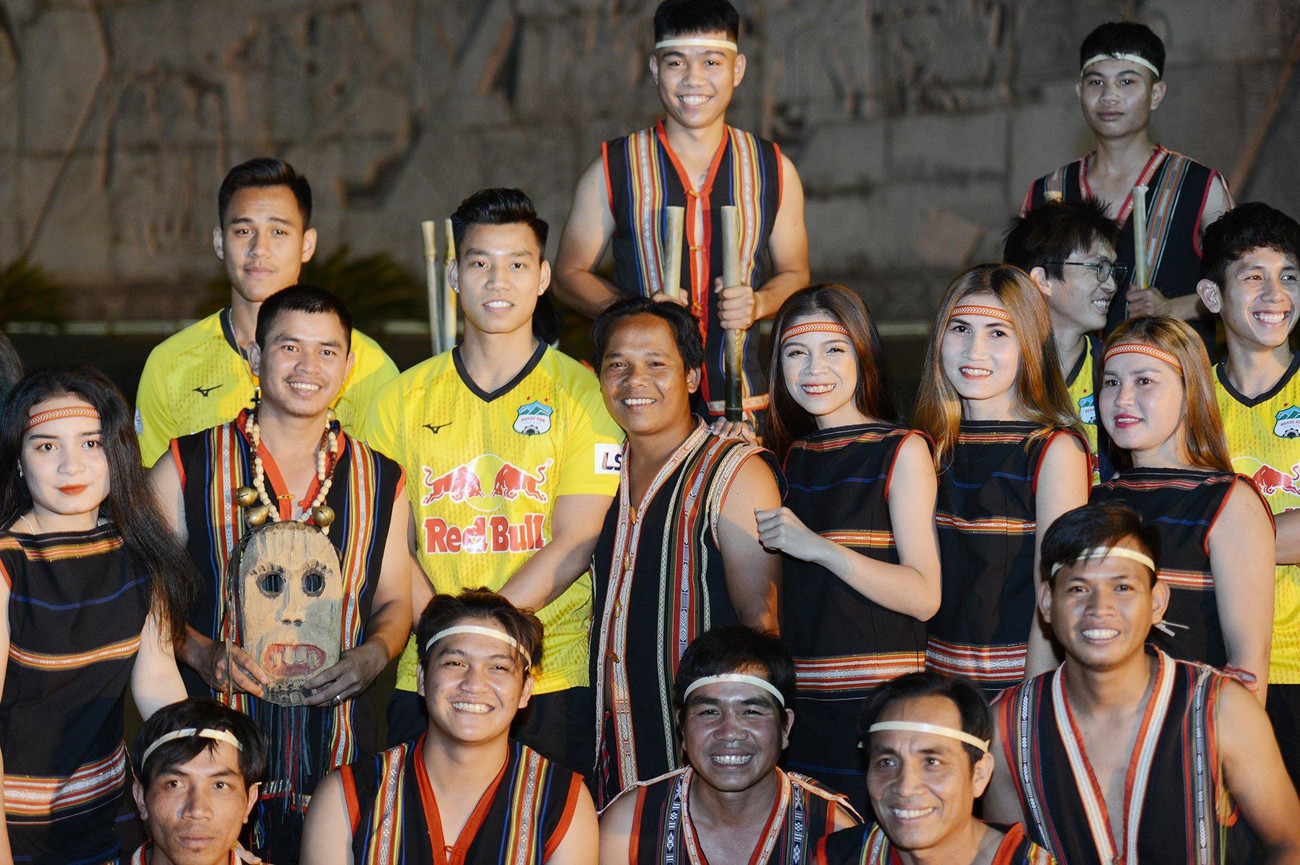 TPO - Cùng tham gia đêm hội cồng chiêng tại thành phố Pleiku, tỉnh Gia Lai, Hoa hậu Đỗ Thị Hà có dịp hội ngộ các cầu thủ của CLB Hoàng Anh Gia Lai, trong đó có đội trưởng nổi tiếng Lương Xuân Trường.