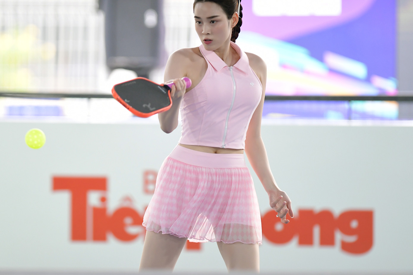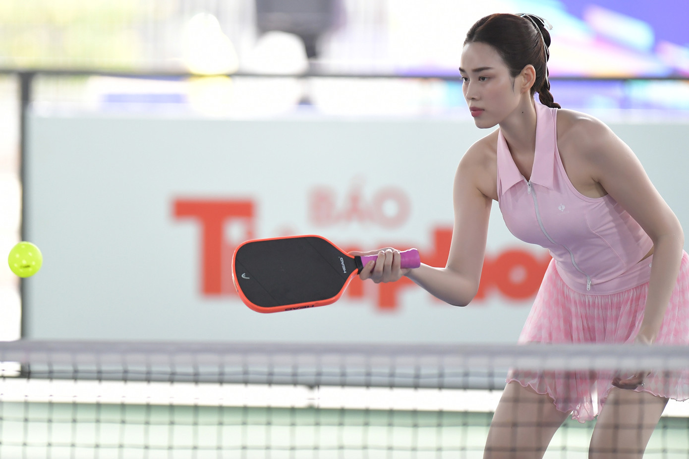 | Hoa hậu Đỗ Thị Hà diện outfit hồng cực xinh, 'bung hết skill' tại Giải Pickleball Việt Nam. Ảnh: DƯƠNG TRIỀU |