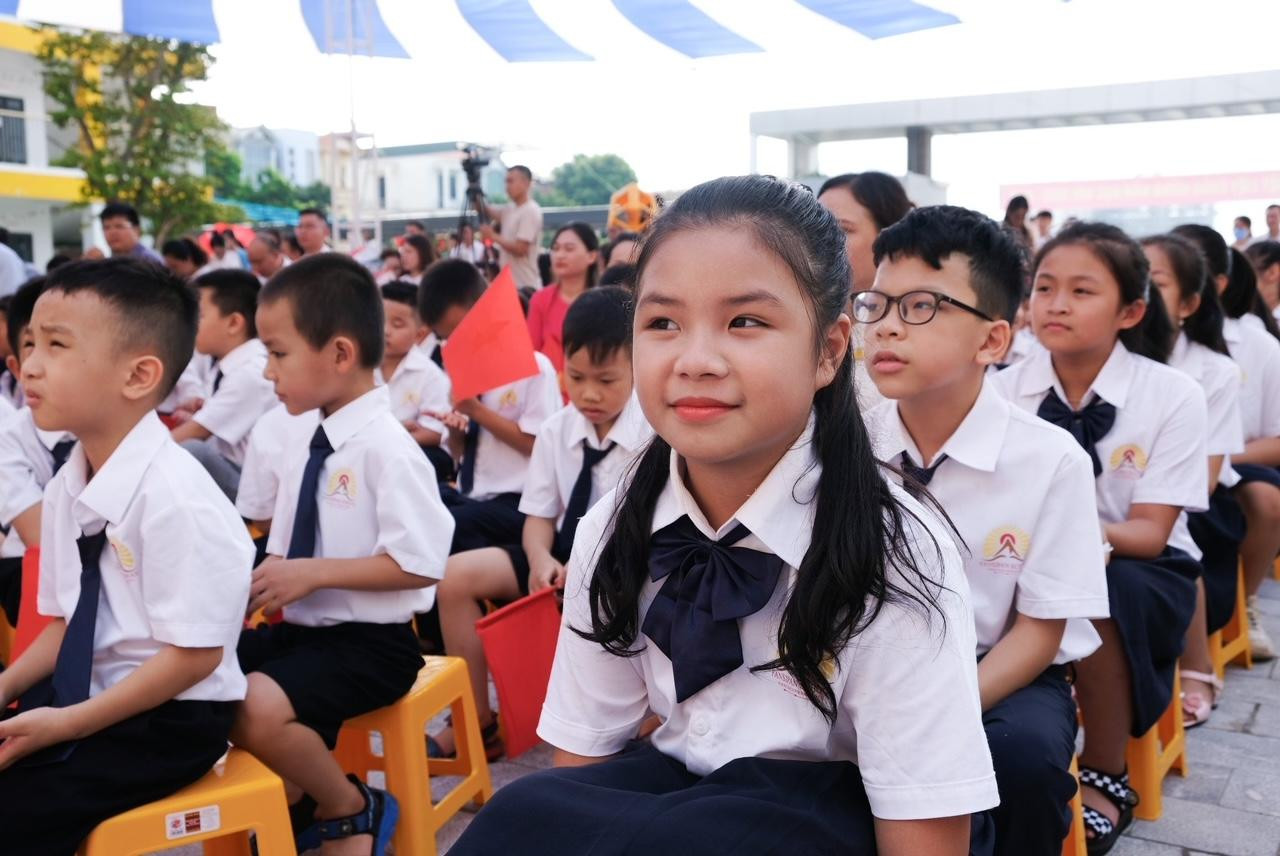 | Trong lễ khai giảng năm học mới, nhà trường đón gần 200 học sinh khối 1 và khối 6 vào học tại trường. |
