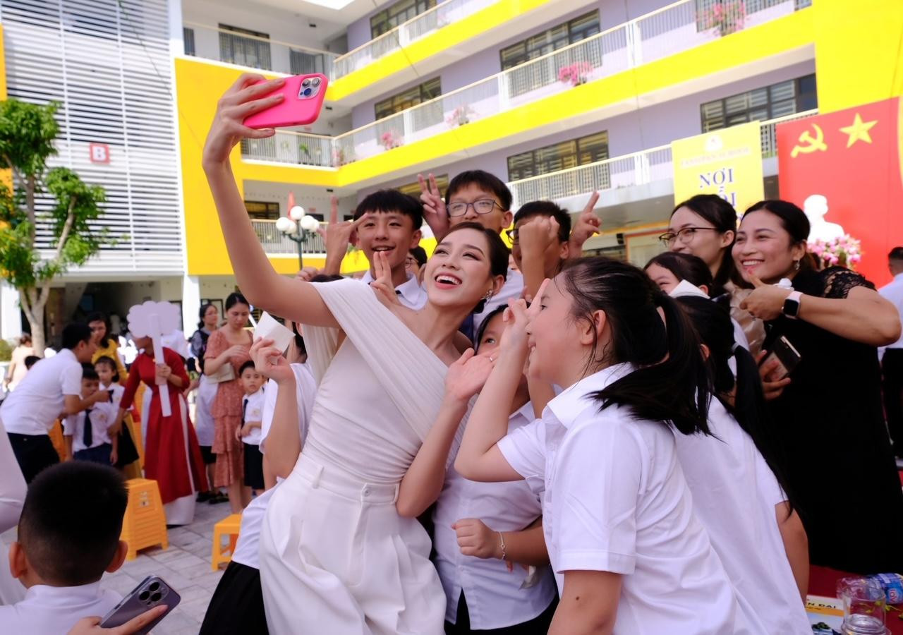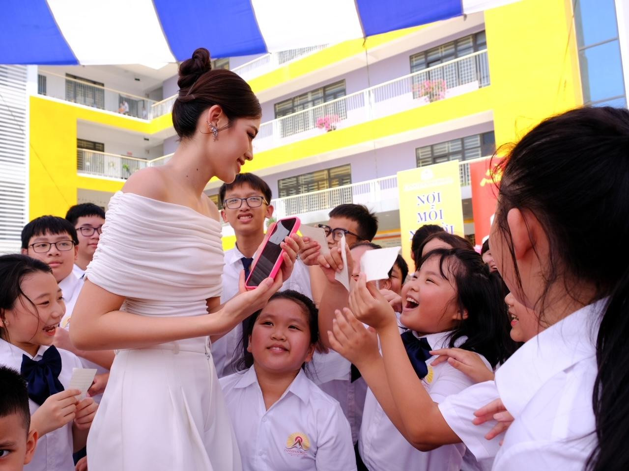 Tham dự lễ khai giảng, Hoa hậu Đỗ Thị Hà đã gặp gỡ, giao lưu cùng học sinh, phụ huynh và các thầy cô giáo tại trường. Tại lễ khai giảng, nàng hậu đã chúc các thầy cô, học sinh Trường tiểu học - THCS Fansipan năm học mới đạt được nhiều kết quả tốt đẹp.